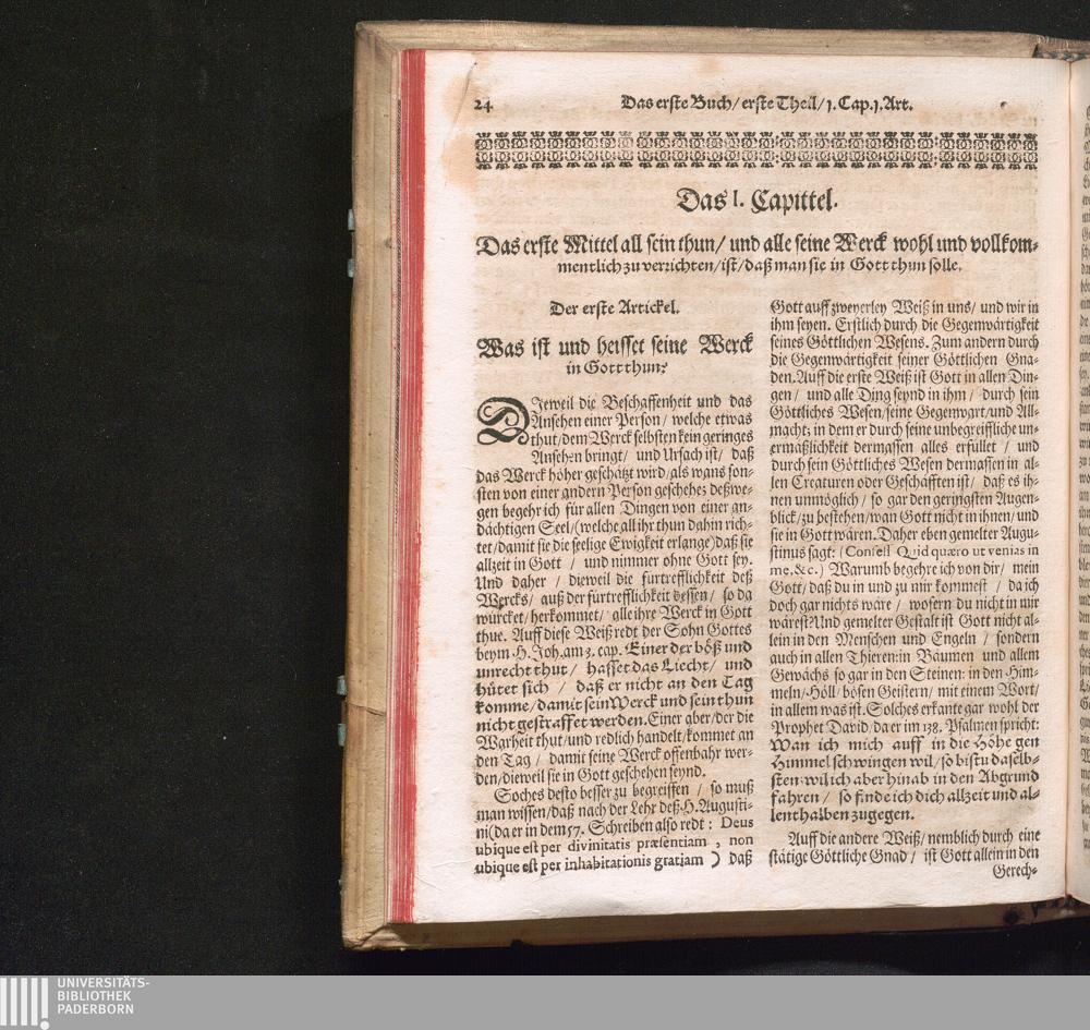 Der erste Artickel deß ersten Capitels. Was ist und heisset seine Wercke in Gott[...]