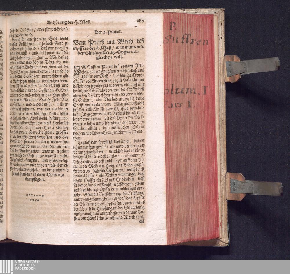 Der 2. Punct. Vom preiß und werth deß Opffers der H. Meß/ wan mans mit dem blütigen[...]