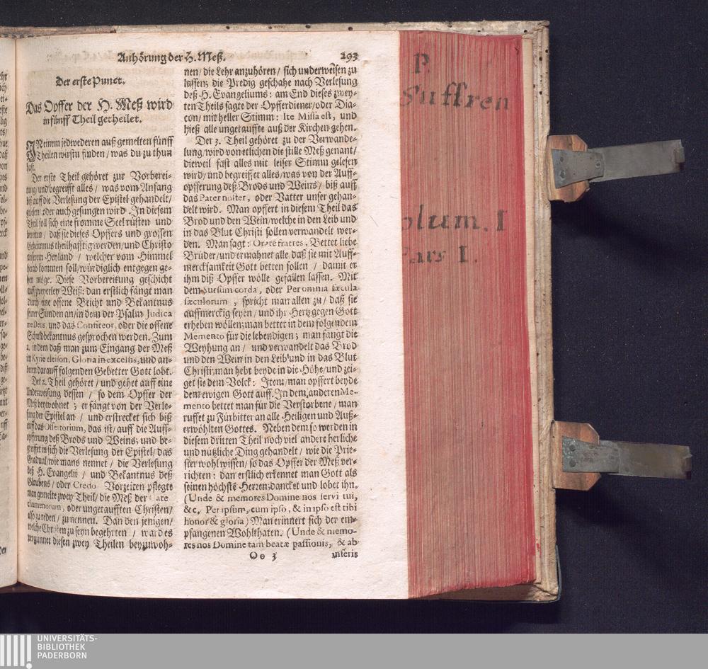 Der 1. Punct. Das Opffer der H. Meß/ wird in fünff Theil außgetheilet