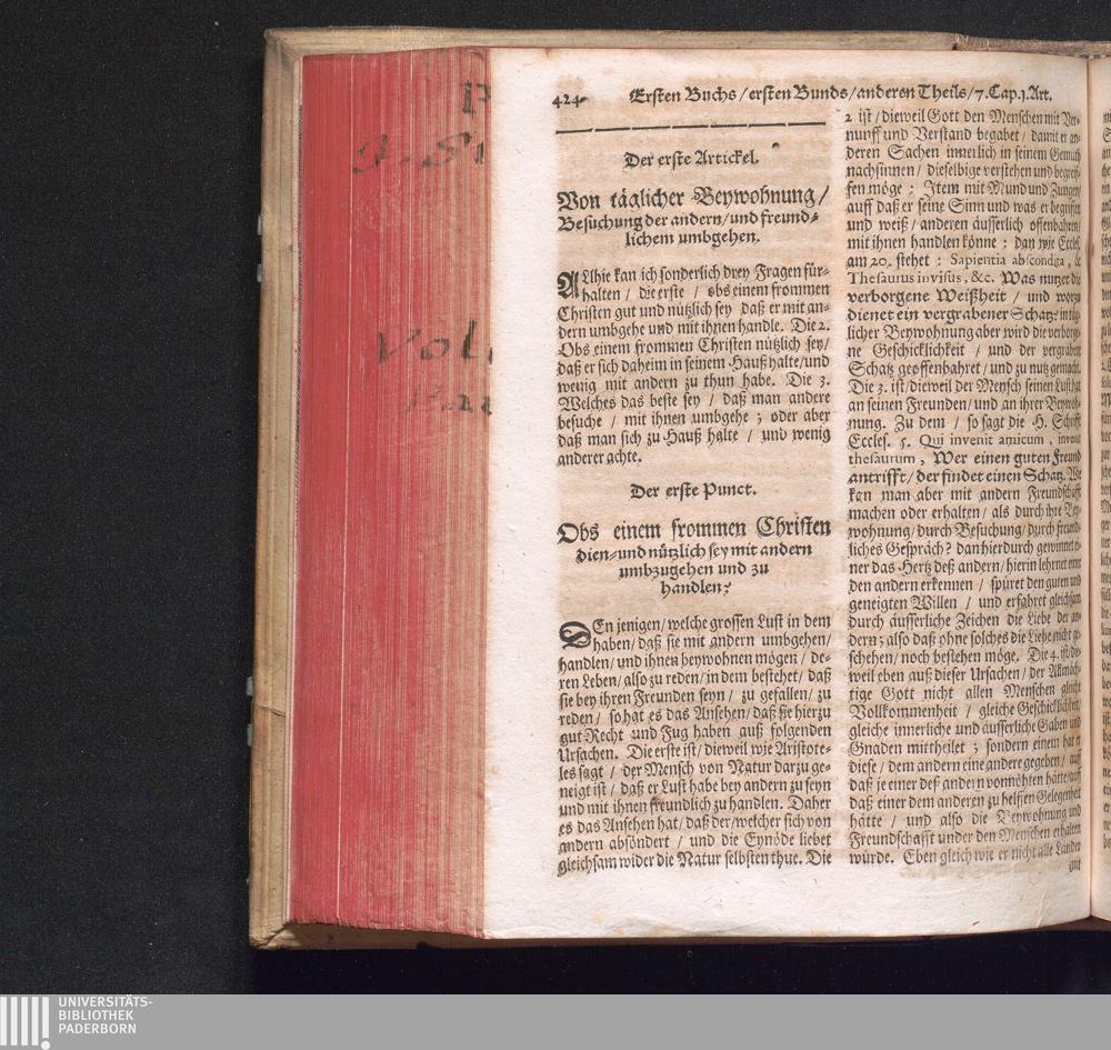 Der 1. Artickel. Von täglicher Beywohnung/ Besuchung der anderen/ und freundlichem[...]