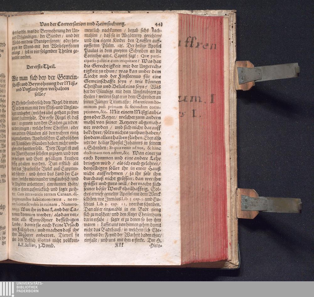 Der 1. Theil/ wie man sich bey der Gemeinschafft und Beywohnung der Miß- und Unglaubigen[...]