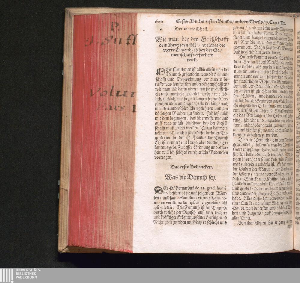 Der vierte Theil. Wie man bey der Gesellschafft demüthig seyn soll/ welches die vierte[...]