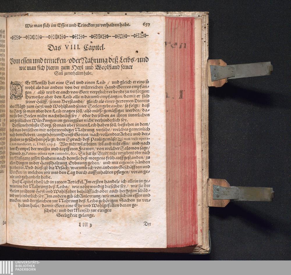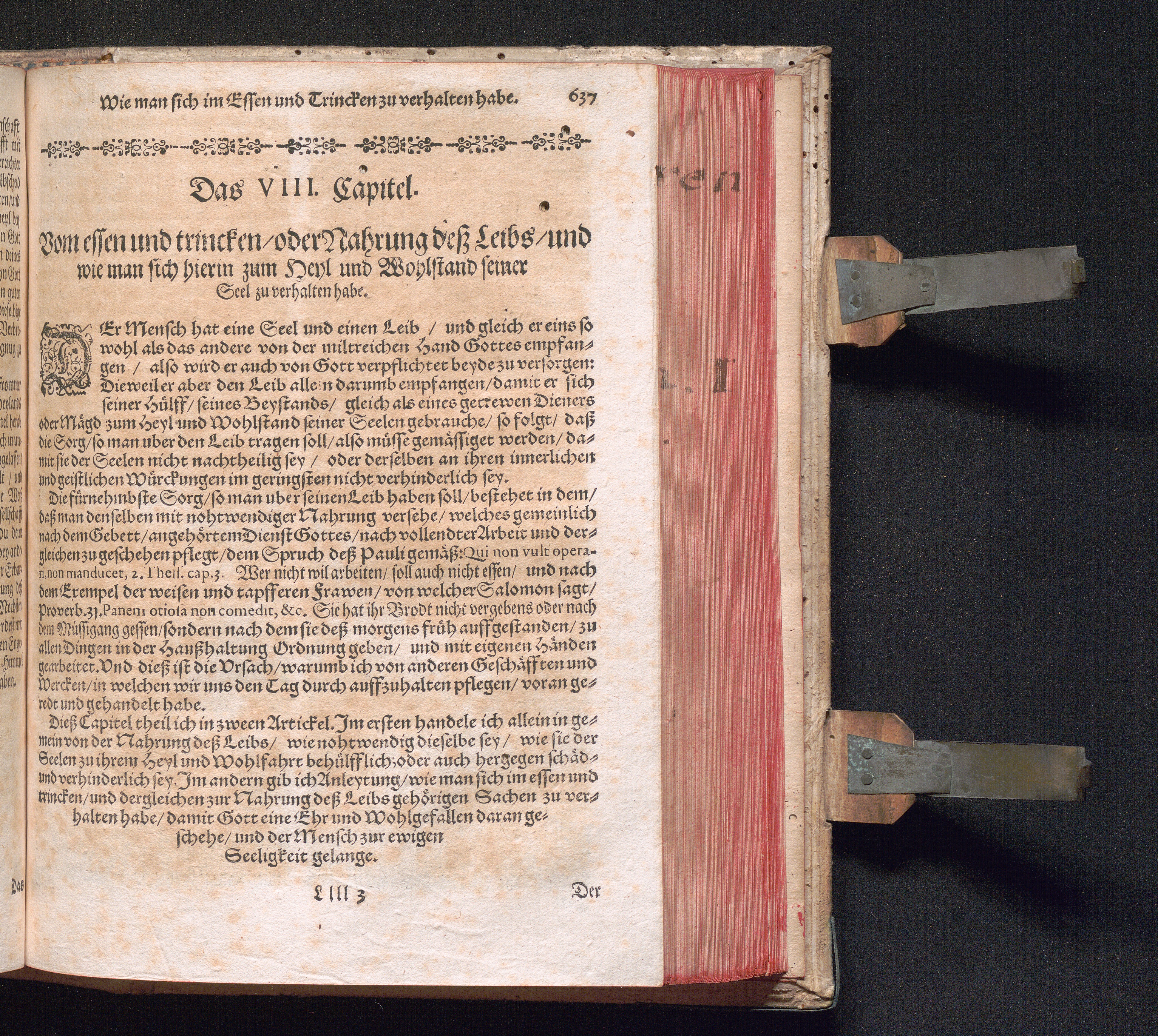 Das achte Capitel. Vom Essen und Trincken/ oder Nahrung deß Leibs/ und wie man sich[...]