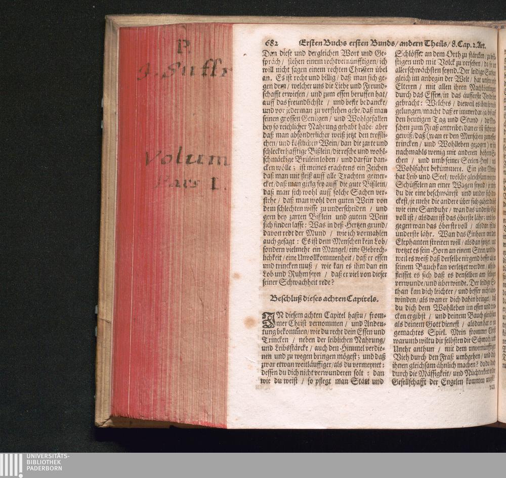 Das achte Capitel. Vom Essen und Trincken/ oder Nahrung deß Leibs/ und wie man sich[...]