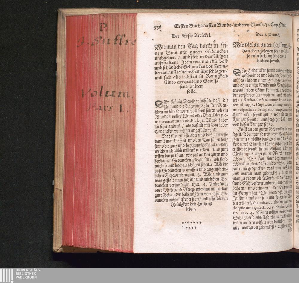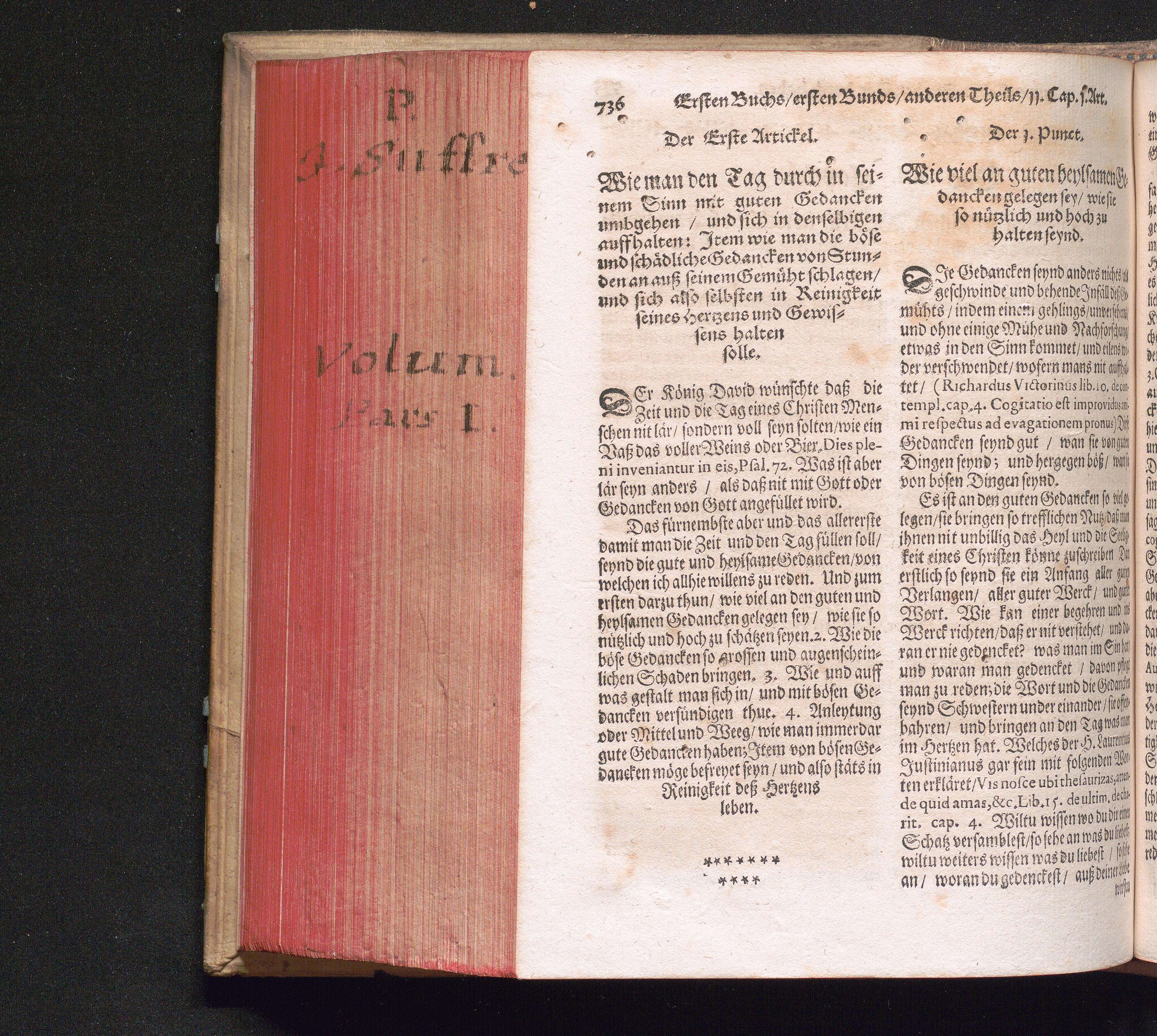 Der 1. Artickel. Wie man den Tag durch in seinem Sinn mit guten Gedancken umbgehen/[...]