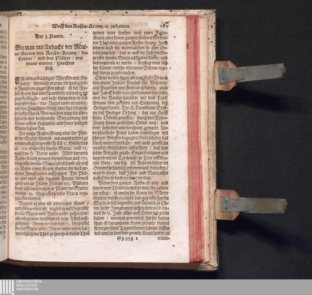 Der 3. Punct. Wie man mit Andacht/ der Mutter Gottes den Rosenkrantz/ die Cron/ und[...]