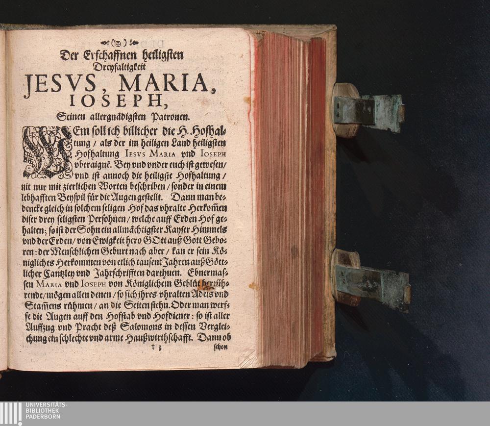 Der Erschaffnen heiligsten Dreyfaltigkeit Jesvs, Maria, Ioseph, Seinen allergnädigsten[...]