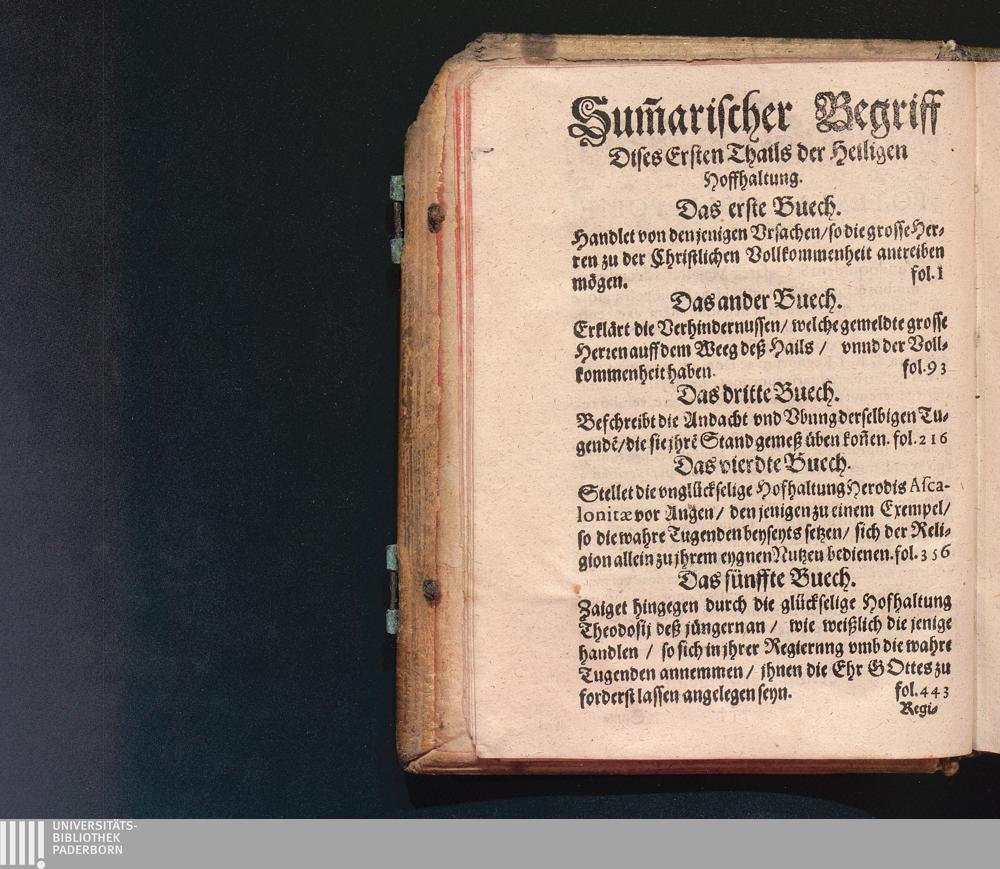 Sum[m]arischer Begriff Dises Ersten Thails der Heiligen Hoffhaltung.