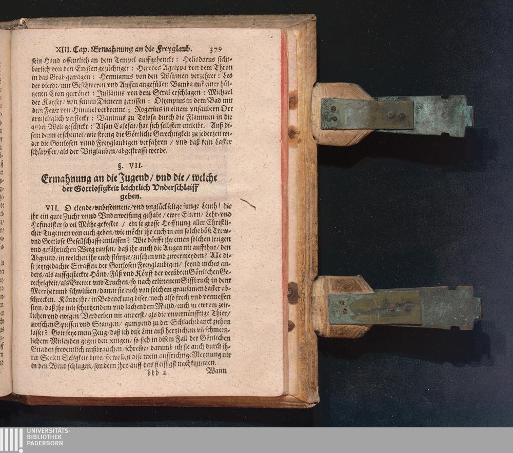§.VII. Ermahnung an die Jugend/ vnd so der Gottlosigkeit leichtlich einen Vnderschlaiff[...]