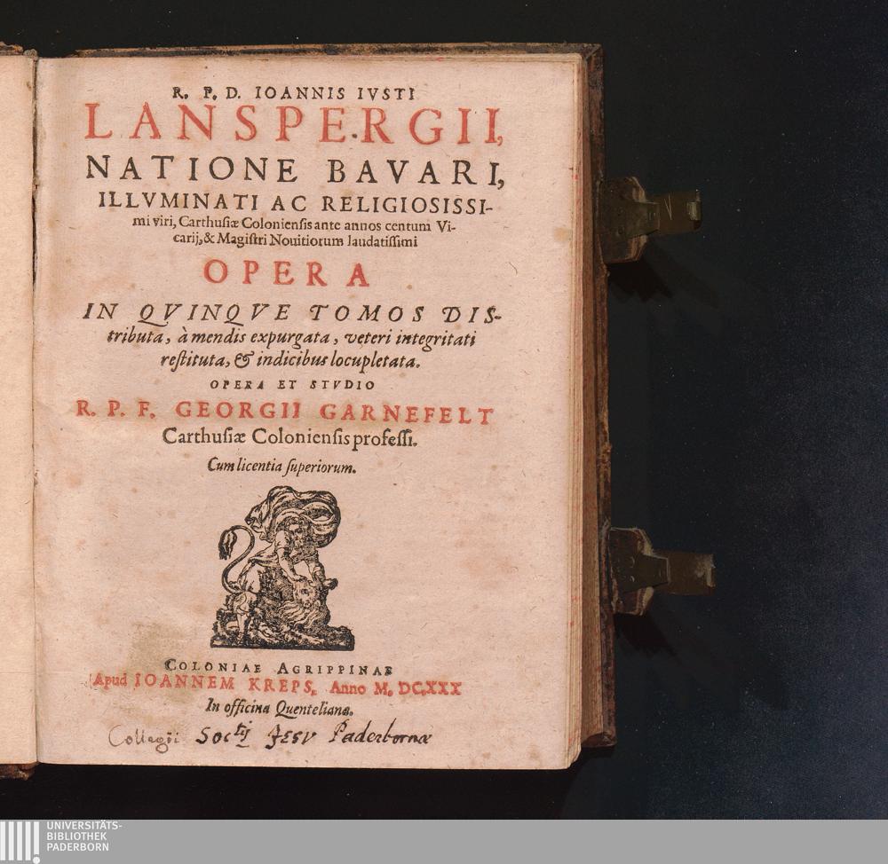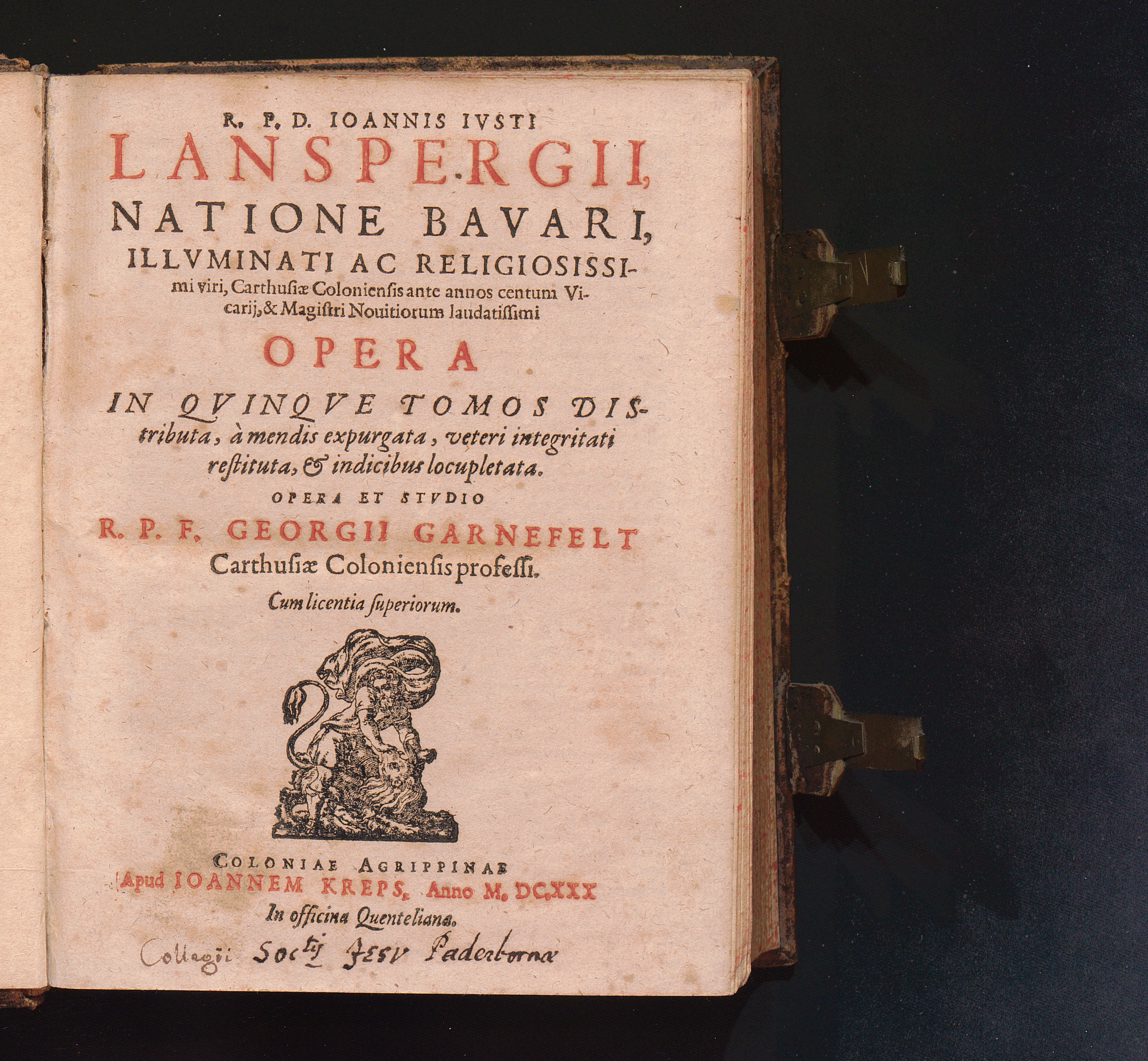 R. P. D. Ioannis Ivsti Lanspergii, Natione Bavari, Illvminati Ac Religiosissimi viri,[...]