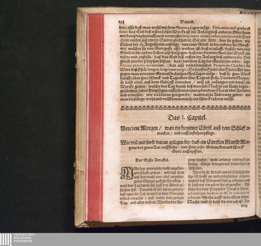 Das erste Capitel. Von dem Morgen/ wan ein frommer Christ auß dem Schlaff erwachet/[...]