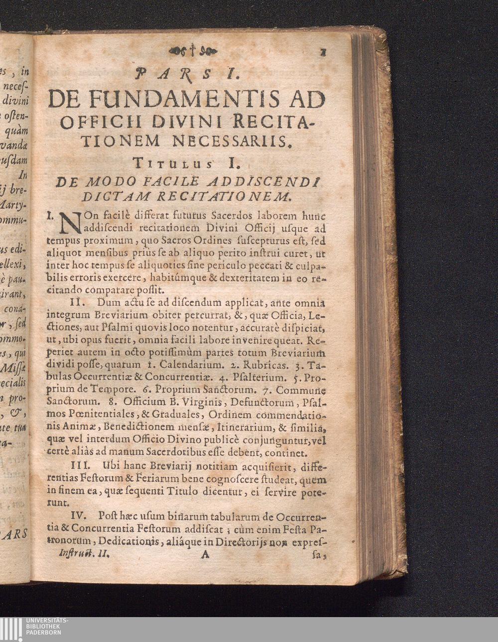 Secunda (1676) De Horis Canonicis Juxta Rubricas Breviarii Romani ritè recitandis : In qua etiam ipsæ Rubricæ Notis brevibus illustratæ, & Martyrologij Romani nomina suis Accentibus signata continentur, Ad Faciliorem Discentium Vsvm Ac Praxin