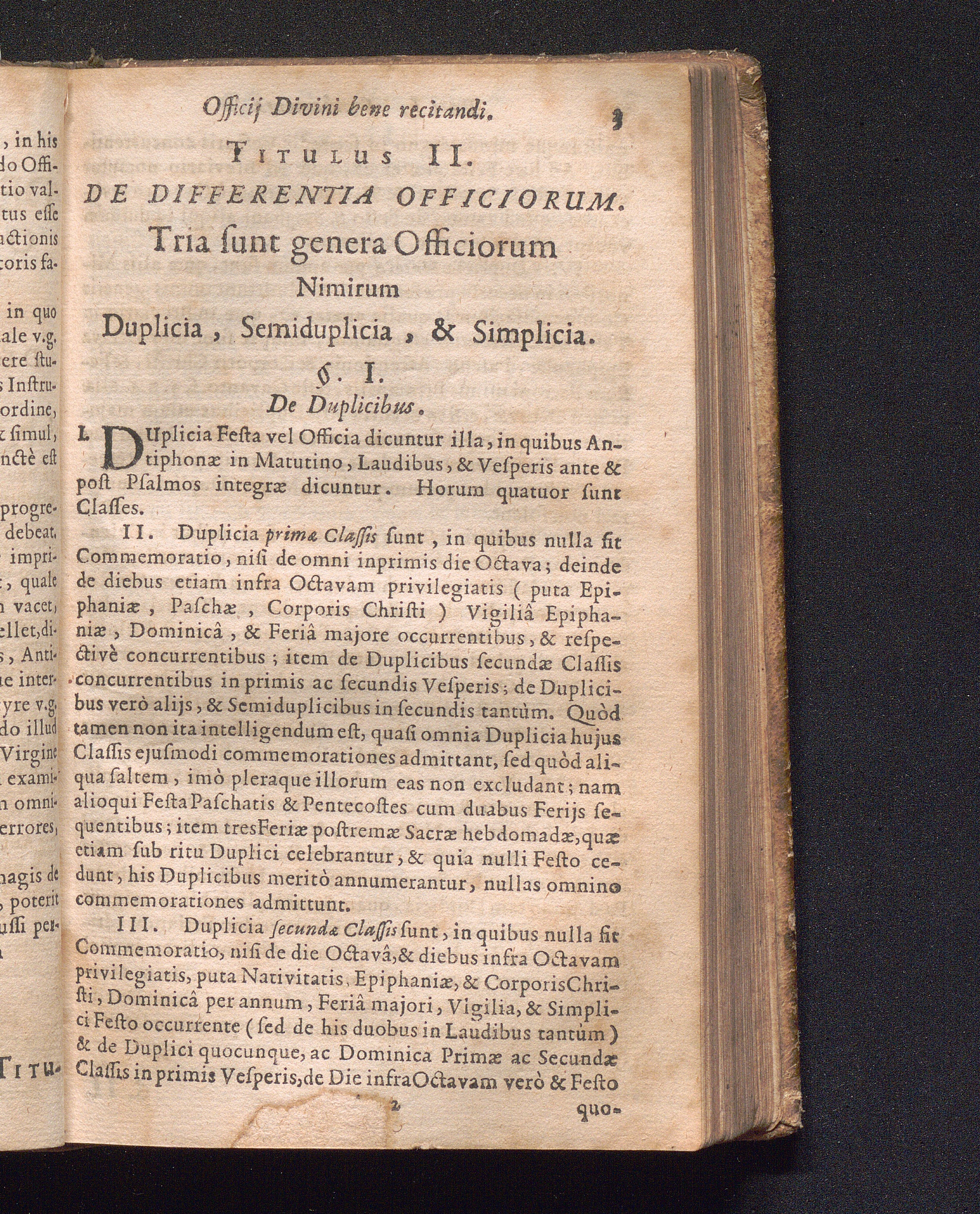Secunda (1676) De Horis Canonicis Juxta Rubricas Breviarii Romani ritè recitandis : In qua etiam ipsæ Rubricæ Notis brevibus illustratæ, & Martyrologij Romani nomina suis Accentibus signata continentur, Ad Faciliorem Discentium Vsvm Ac Praxin