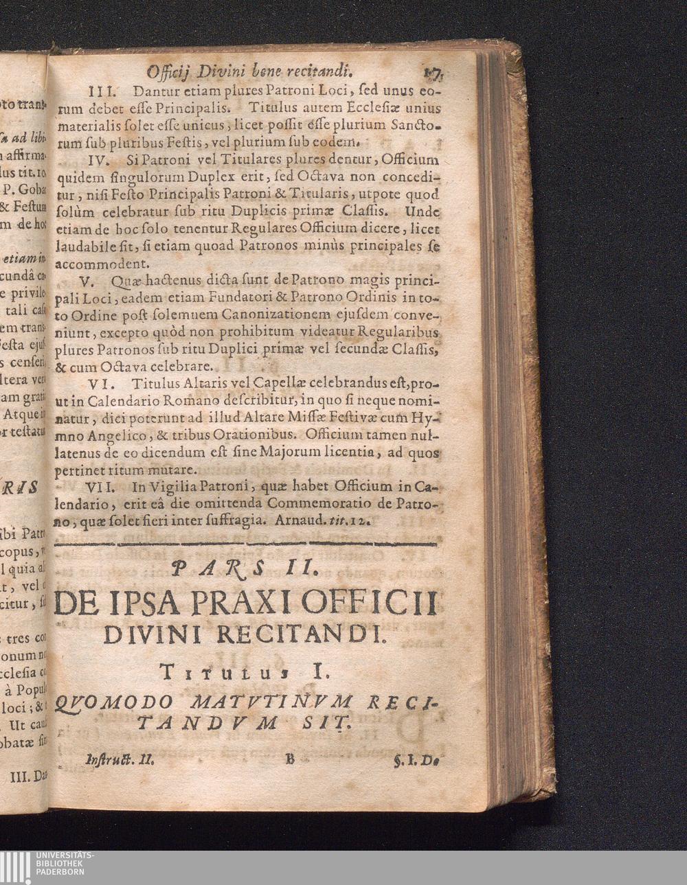 Secunda (1676) De Horis Canonicis Juxta Rubricas Breviarii Romani ritè recitandis : In qua etiam ipsæ Rubricæ Notis brevibus illustratæ, & Martyrologij Romani nomina suis Accentibus signata continentur, Ad Faciliorem Discentium Vsvm Ac Praxin
