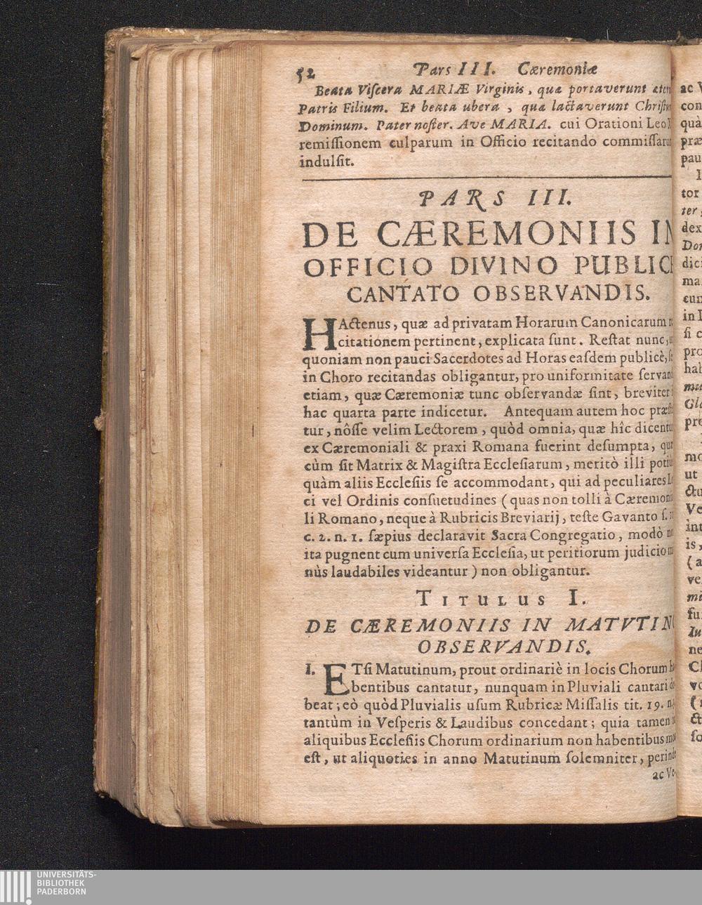 Secunda (1676) De Horis Canonicis Juxta Rubricas Breviarii Romani ritè recitandis : In qua etiam ipsæ Rubricæ Notis brevibus illustratæ, & Martyrologij Romani nomina suis Accentibus signata continentur, Ad Faciliorem Discentium Vsvm Ac Praxin
