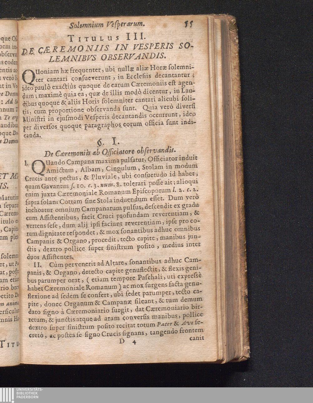 Secunda (1676) De Horis Canonicis Juxta Rubricas Breviarii Romani ritè recitandis : In qua etiam ipsæ Rubricæ Notis brevibus illustratæ, & Martyrologij Romani nomina suis Accentibus signata continentur, Ad Faciliorem Discentium Vsvm Ac Praxin