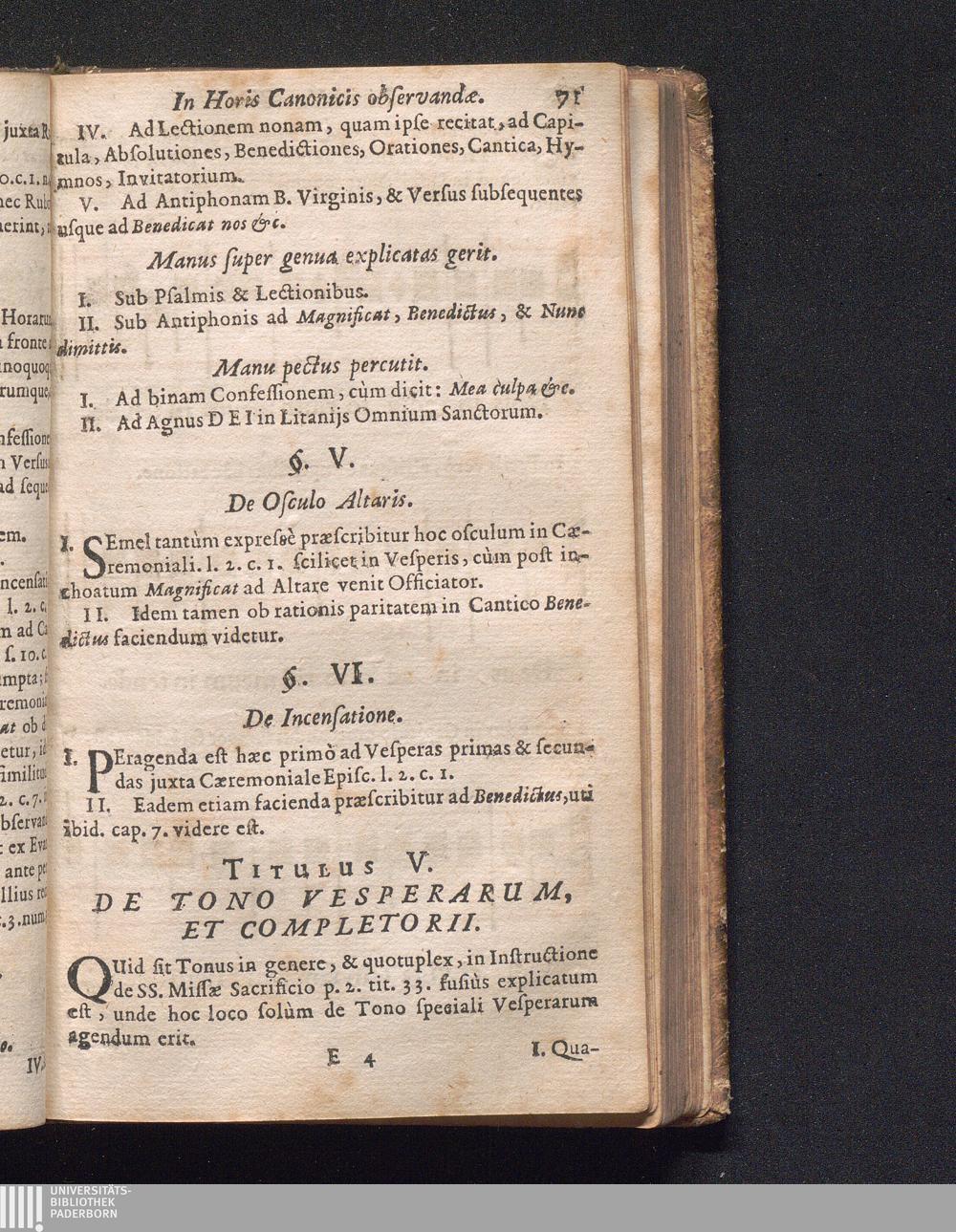 Secunda (1676) De Horis Canonicis Juxta Rubricas Breviarii Romani ritè recitandis : In qua etiam ipsæ Rubricæ Notis brevibus illustratæ, & Martyrologij Romani nomina suis Accentibus signata continentur, Ad Faciliorem Discentium Vsvm Ac Praxin