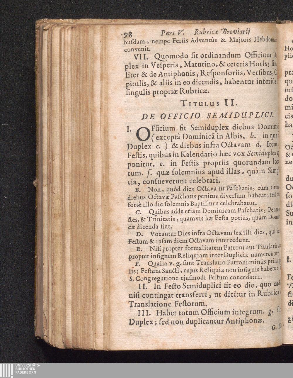 Secunda (1676) De Horis Canonicis Juxta Rubricas Breviarii Romani ritè recitandis : In qua etiam ipsæ Rubricæ Notis brevibus illustratæ, & Martyrologij Romani nomina suis Accentibus signata continentur, Ad Faciliorem Discentium Vsvm Ac Praxin