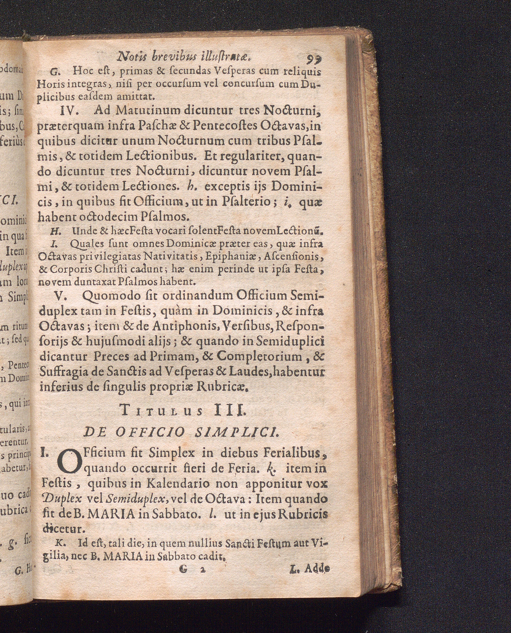 Secunda (1676) De Horis Canonicis Juxta Rubricas Breviarii Romani ritè recitandis : In qua etiam ipsæ Rubricæ Notis brevibus illustratæ, & Martyrologij Romani nomina suis Accentibus signata continentur, Ad Faciliorem Discentium Vsvm Ac Praxin