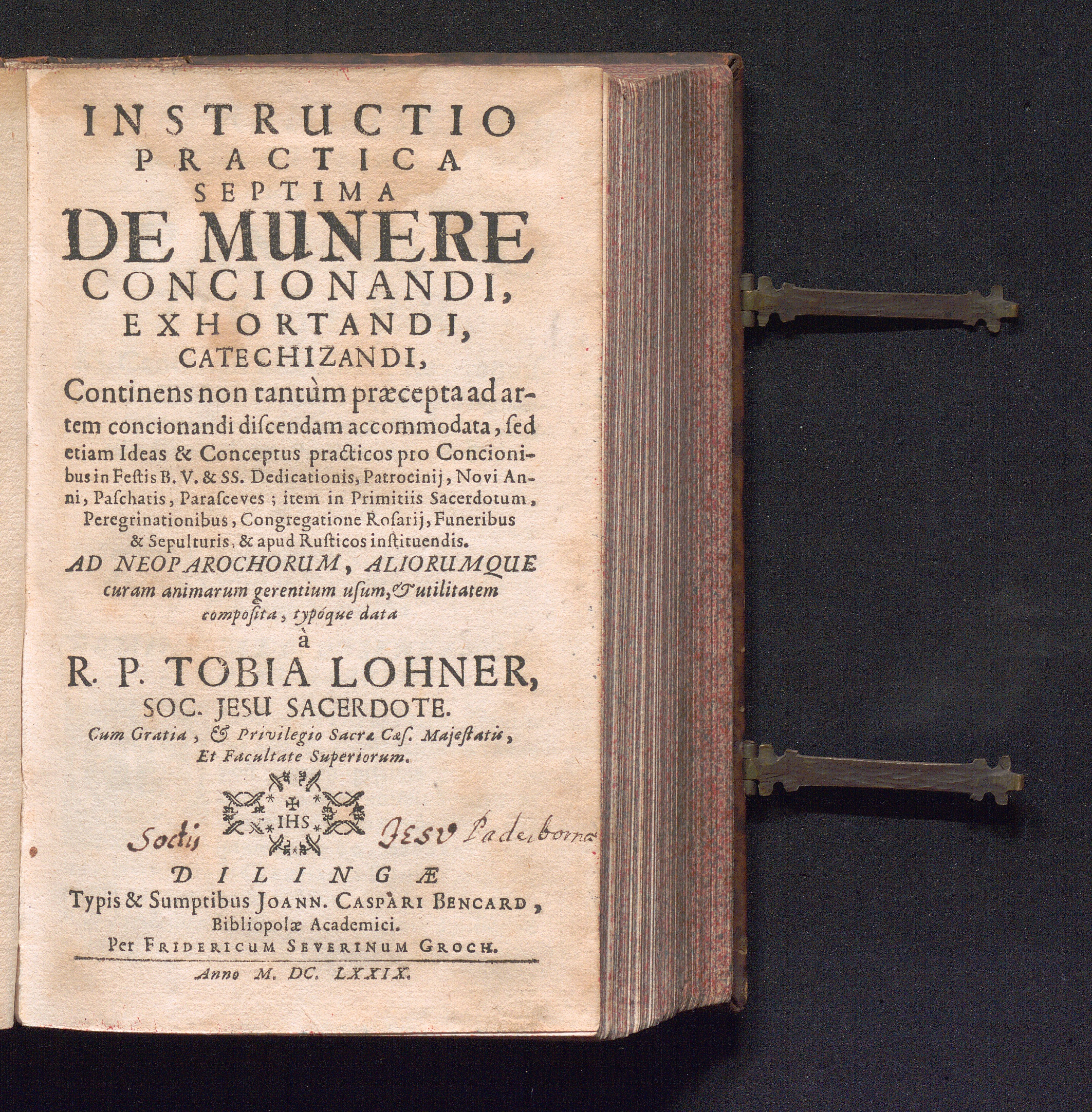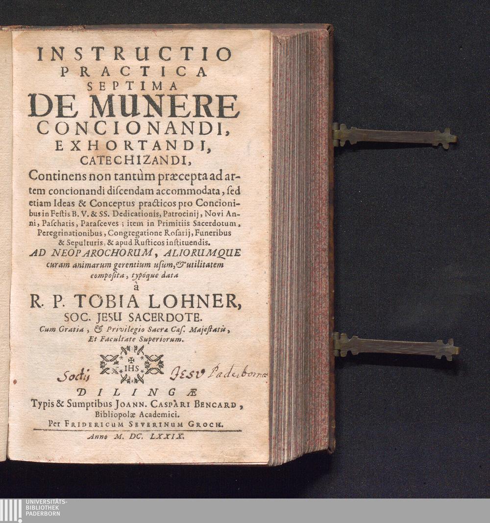 Septima (1679) De Munere Concionandi, Exhortandi, Catechizandi : Continens non tantùm praecepta ad artem concionandi discendam accomodata, sed etiam Ideas & Conceptus practicos pro Concionibus in Festis B. V. & SS. Dedicationis, Patrocinij, Novi Anni, Paschatis, Parasceves; item in Primitiis Sacerdotum, Peregrinationibus, Congregatione Rosarij, Funeribus & Sepulturis, & apud Rusticos instituendis.