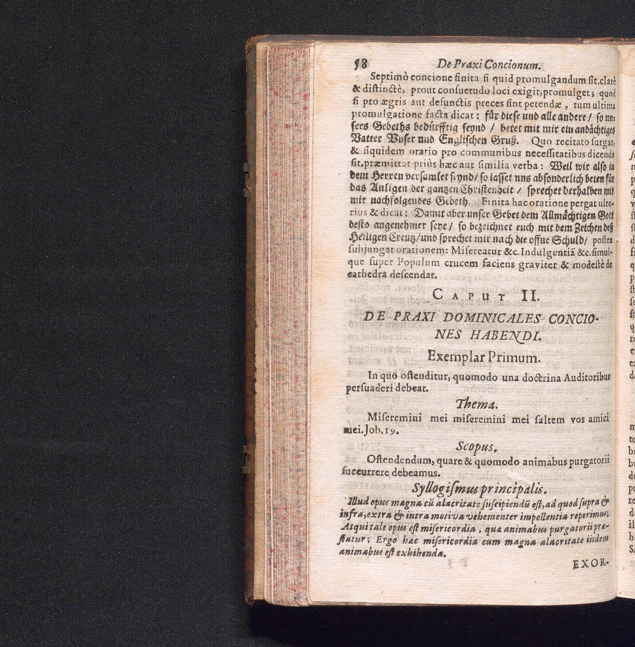 Septima (1679) De Munere Concionandi, Exhortandi, Catechizandi : Continens non tantùm praecepta ad artem concionandi discendam accomodata, sed etiam Ideas & Conceptus practicos pro Concionibus in Festis B. V. & SS. Dedicationis, Patrocinij, Novi Anni, Paschatis, Parasceves; item in Primitiis Sacerdotum, Peregrinationibus, Congregatione Rosarij, Funeribus & Sepulturis, & apud Rusticos instituendis.