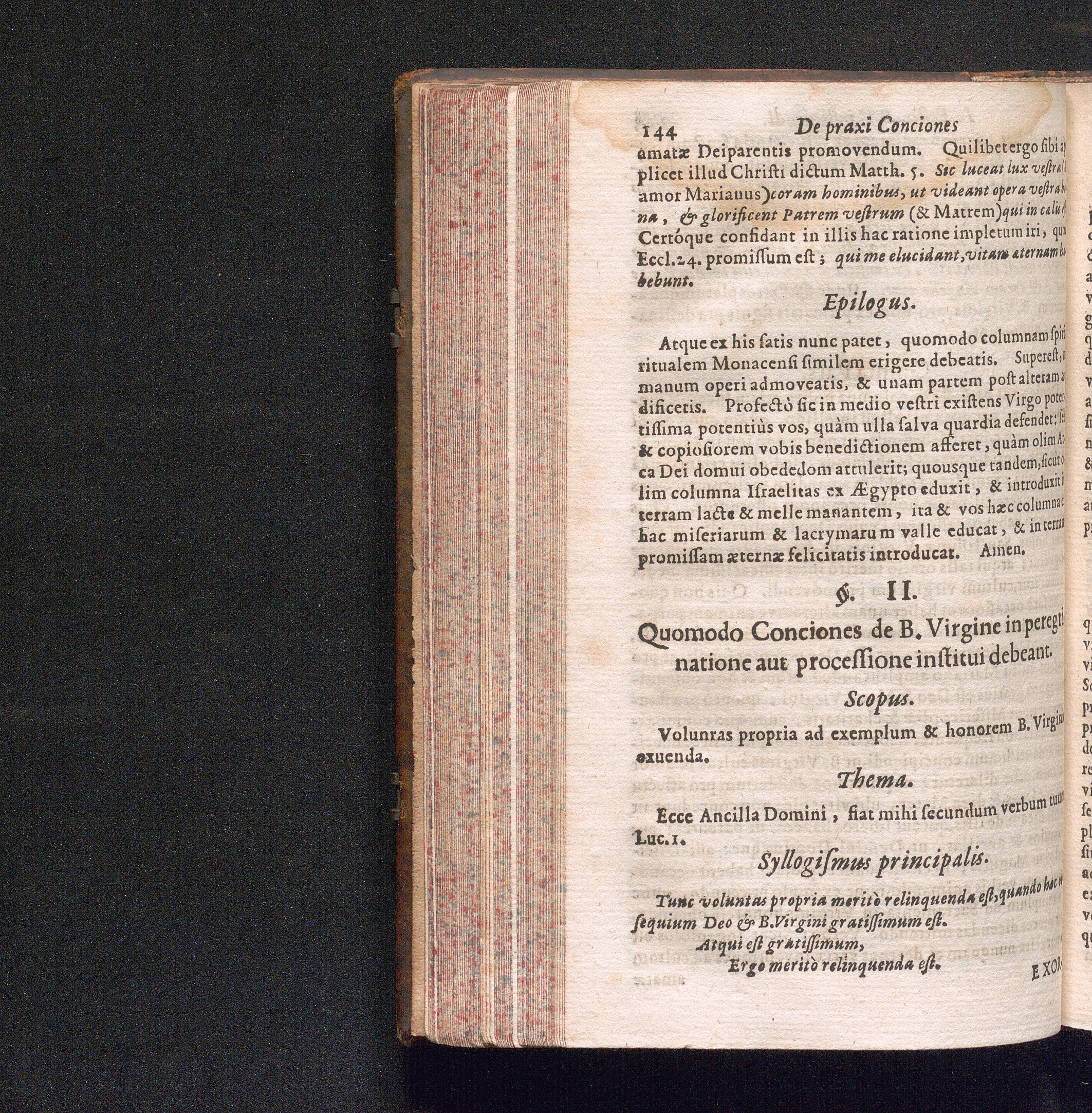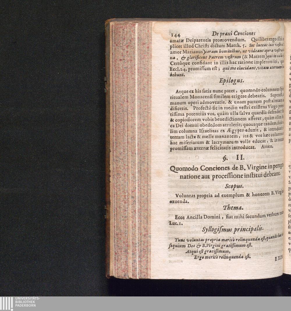 Septima (1679) De Munere Concionandi, Exhortandi, Catechizandi : Continens non tantùm praecepta ad artem concionandi discendam accomodata, sed etiam Ideas & Conceptus practicos pro Concionibus in Festis B. V. & SS. Dedicationis, Patrocinij, Novi Anni, Paschatis, Parasceves; item in Primitiis Sacerdotum, Peregrinationibus, Congregatione Rosarij, Funeribus & Sepulturis, & apud Rusticos instituendis.