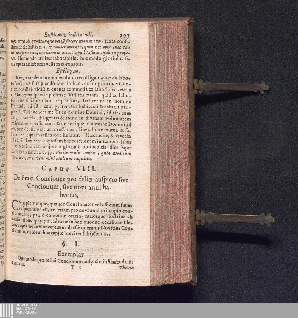 Septima (1679) De Munere Concionandi, Exhortandi, Catechizandi : Continens non tantùm praecepta ad artem concionandi discendam accomodata, sed etiam Ideas & Conceptus practicos pro Concionibus in Festis B. V. & SS. Dedicationis, Patrocinij, Novi Anni, Paschatis, Parasceves; item in Primitiis Sacerdotum, Peregrinationibus, Congregatione Rosarij, Funeribus & Sepulturis, & apud Rusticos instituendis.