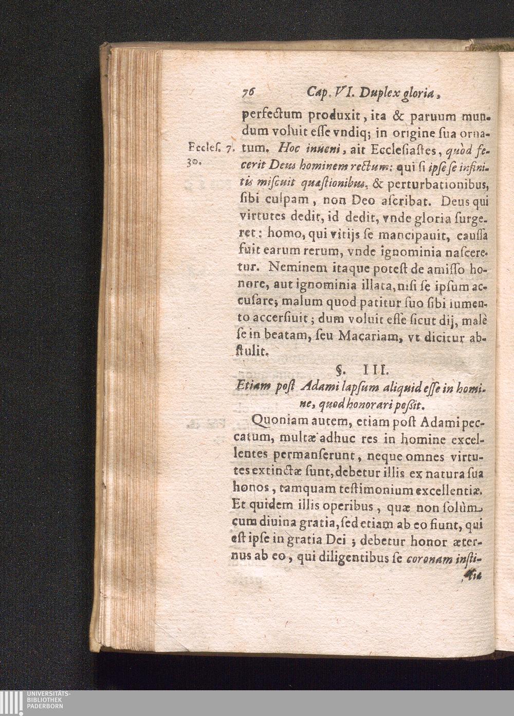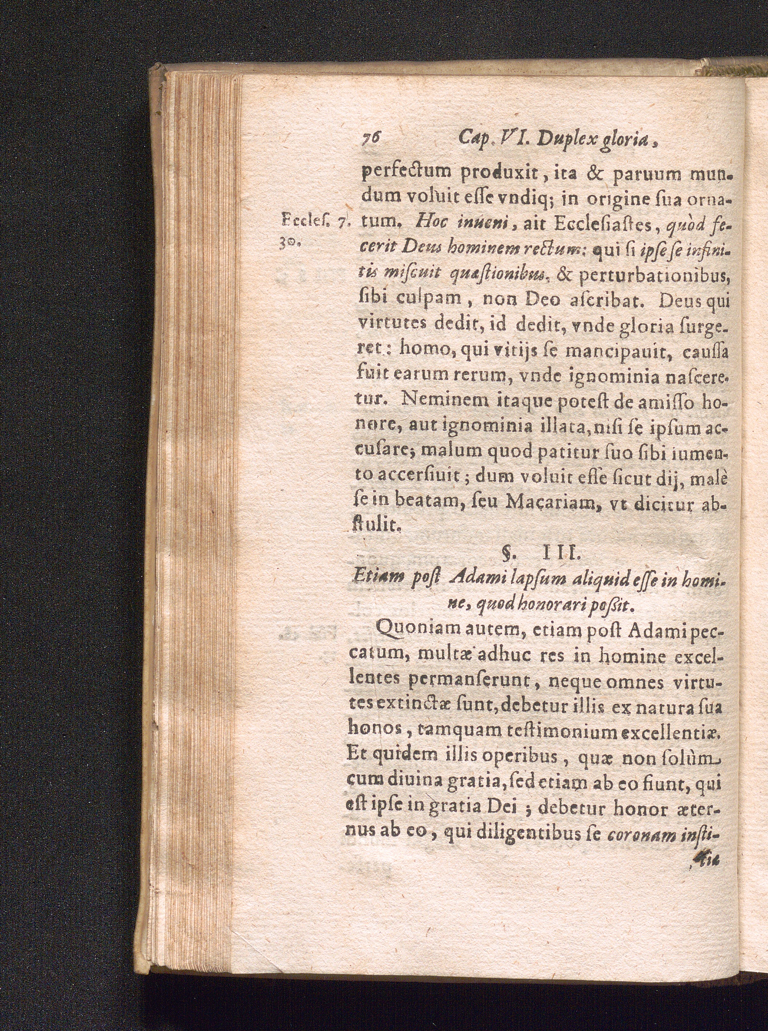 §. 3. Etiam post Adami lapsum aliquid esse in homine, quod honorari poßit.
