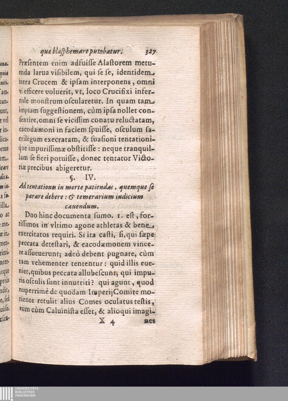 §. 4. Ad tentationes in morte patiendas, quemq[ue] se parare debere: & temerarium[...]
