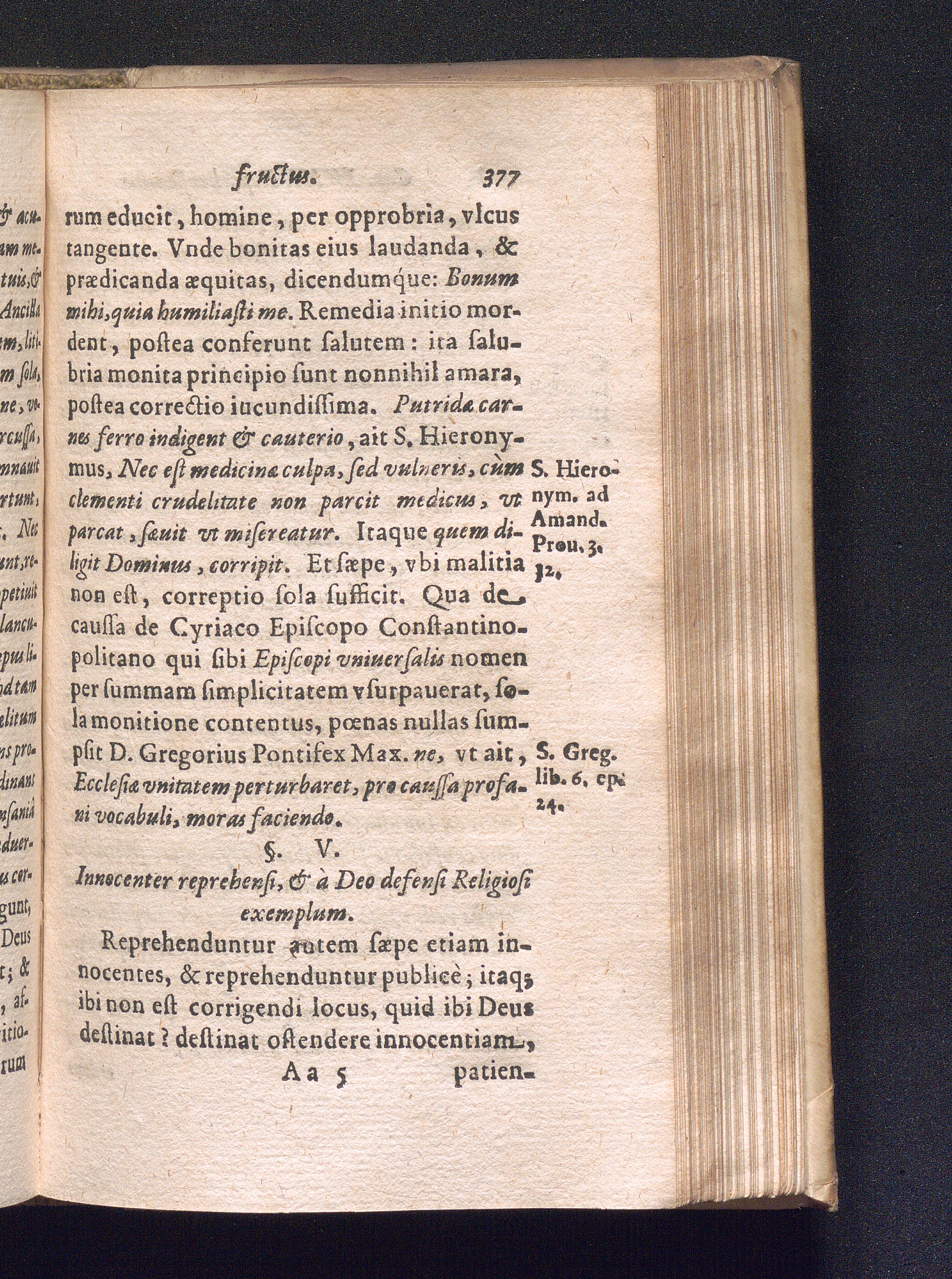 §. 5. Innocenter reprehensi, & à Deo defensi Religiosi exemplum.