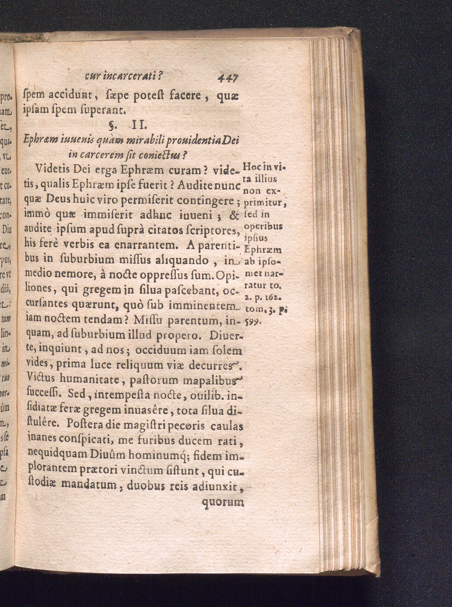 §. 2. Ephræm iuuenis quàm mirabili prouidentia Dei in carcerem sit coniectus?