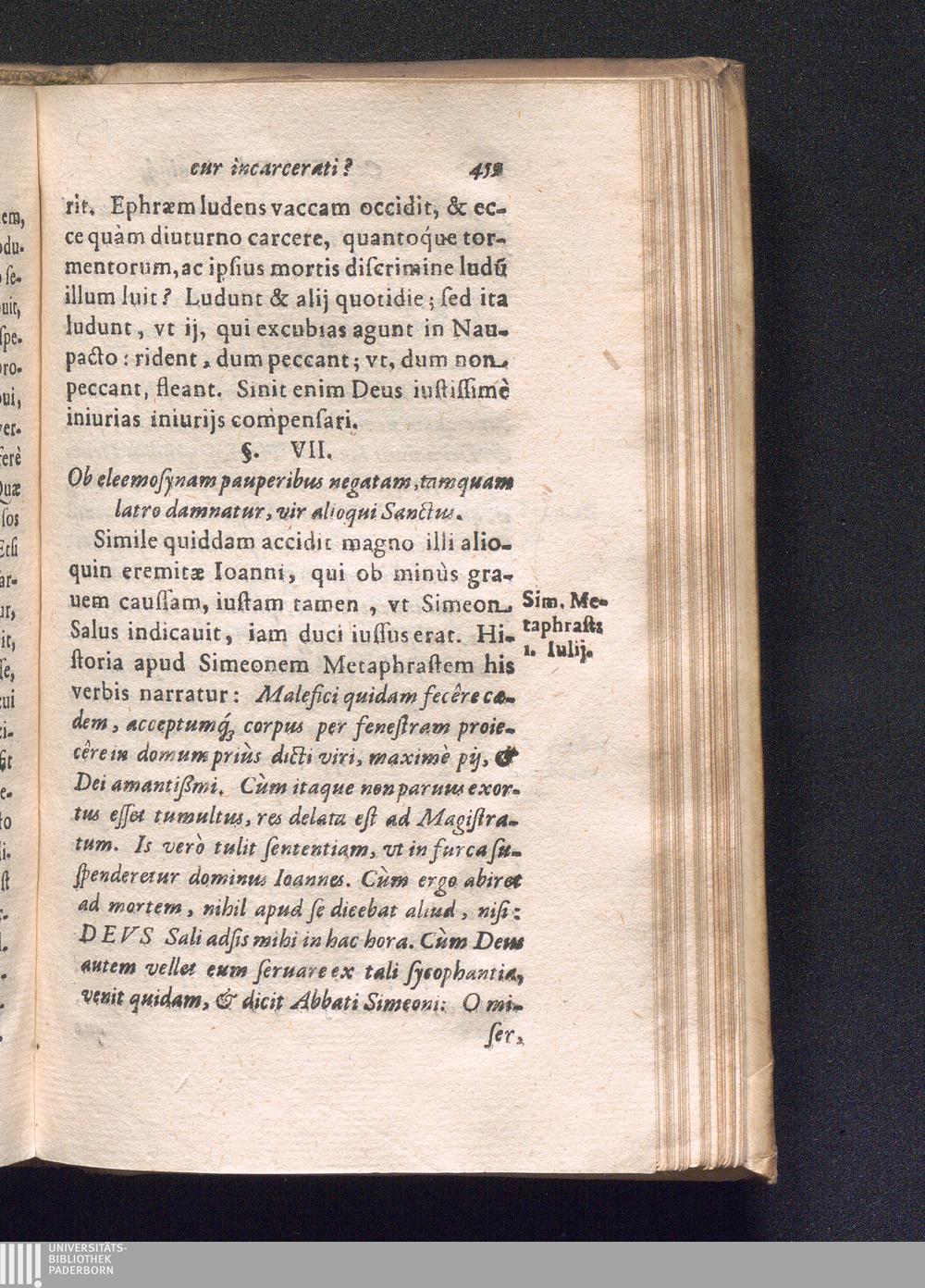 §. 7. Ob eleemosynam pauperibus negatam, tamquam latro damnatur, vir alioqui San[...]