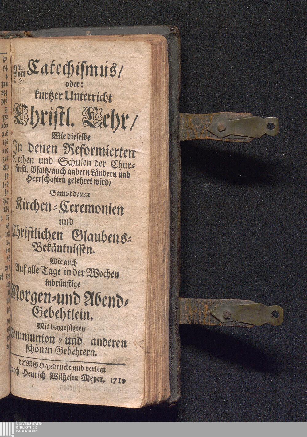 Catechismus/ oder: kurtzer Unterricht Christl. Lehr/ Wie dieselbe Jn denen Reformierten[...]