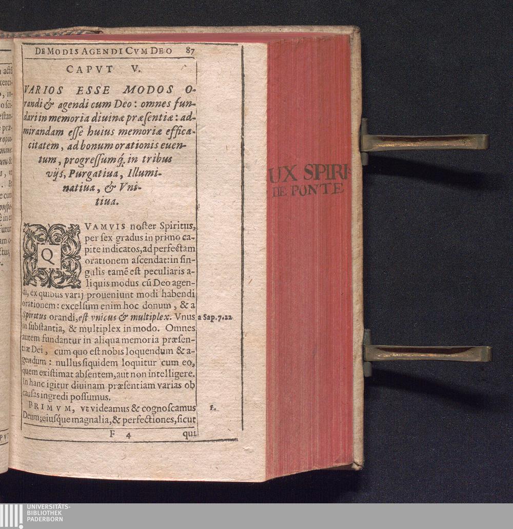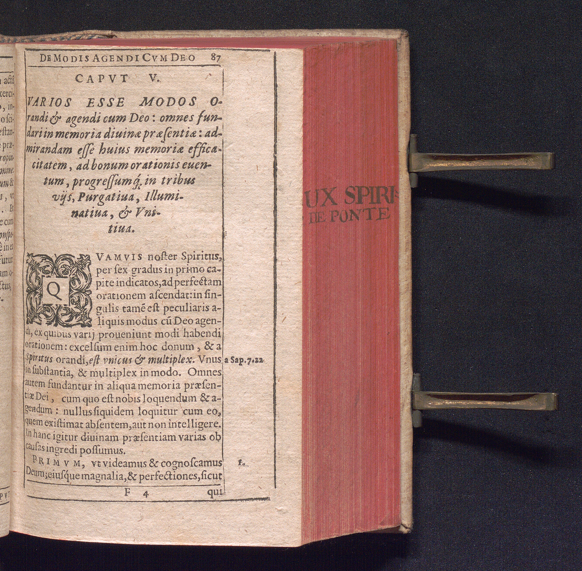 Dvx Spiritvalis : In Qvo Agitvr De Oratione, Meditatione, & Contemplatione: De Visitationibus Divinis, Gratijsque extraordinarijs: De Mortificatione, Heroicisque actionibus, sive operibus, quæ illas omnes comitantur / Avctore R. P. Lvdovico De Ponte Vallis-Oletano, Societatis Iesv. Interprete R.P. Melchiore Trevinnio eiusdem Societatis Iesv Presbytero