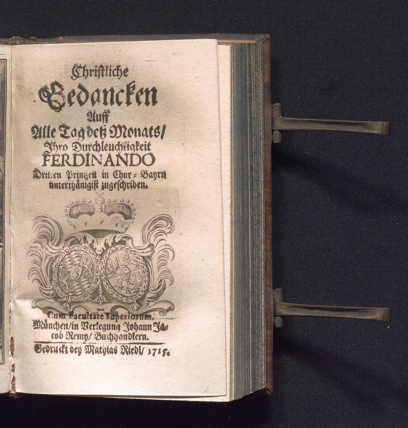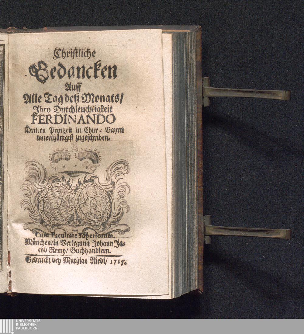 Christliche Gedancken Auff alle Tag deß Monats, Ihro Durchleuchtigkeit Ferdinando Dritten Printzen in Chur-Bayrn unterthänigist zugeschriben