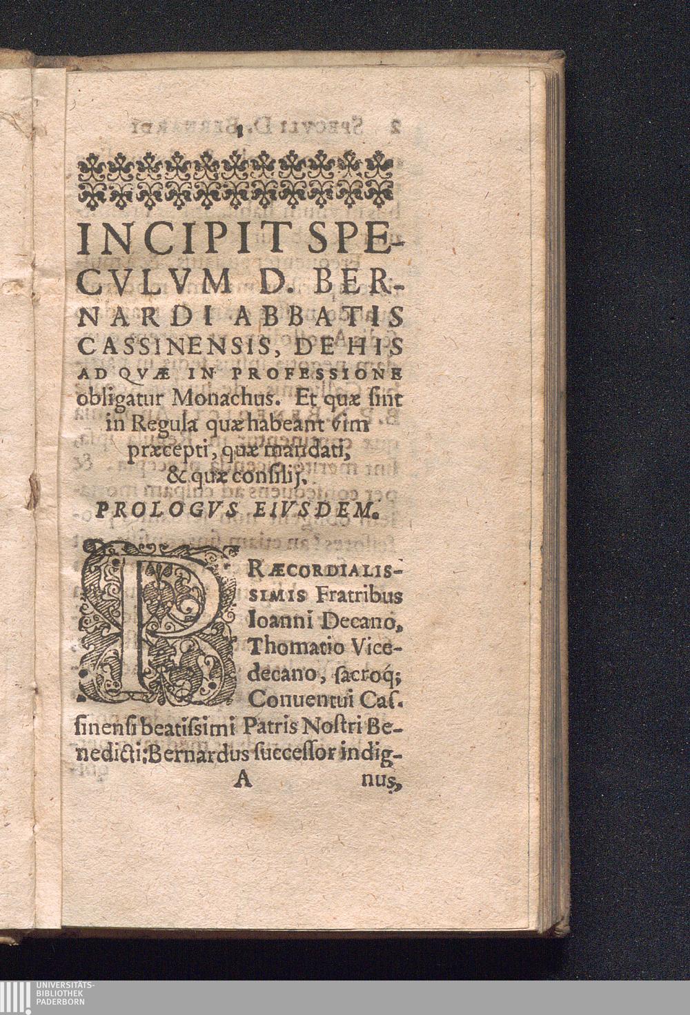 Specvlvm Monachorvm D. Bernardi, S. R. E. Cardinalis, Et Abbatis Cassinensis : Opvscvlvm Vt Insigniter pium & eruditum, ita omnibus Religiosis, præsertim S. P. Benedicti Regulam profitentibus vtilißimum / [Arnulfus de Boeriis]