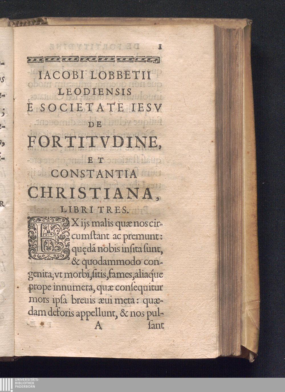 Jacobi Lobbetii Leodiensis E Societate Iesv, De Fortitvdine Et Constantia Christiana Libri Tres : Ad Reverendvm Admodvm In Christo Patrem Mvtivm Vitellescvm Societatis Jesv Præpositum Generalem; ipso conditæ Societatis Anno Sæcvlari
