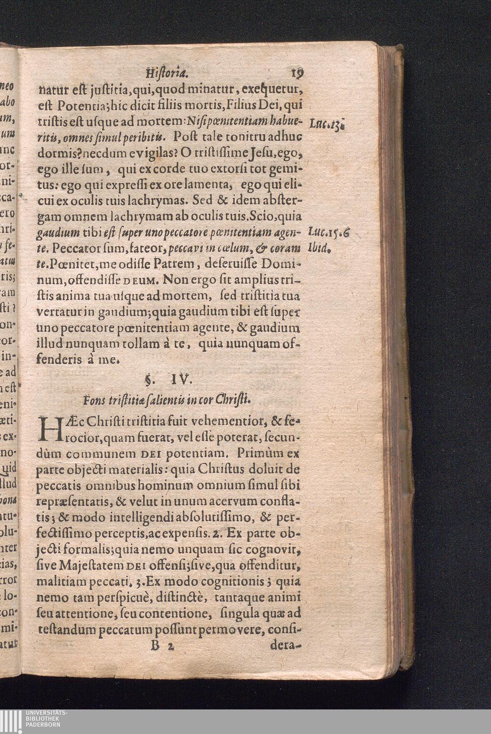 §. IV. Fons tristitiæ salientis incor Christi.