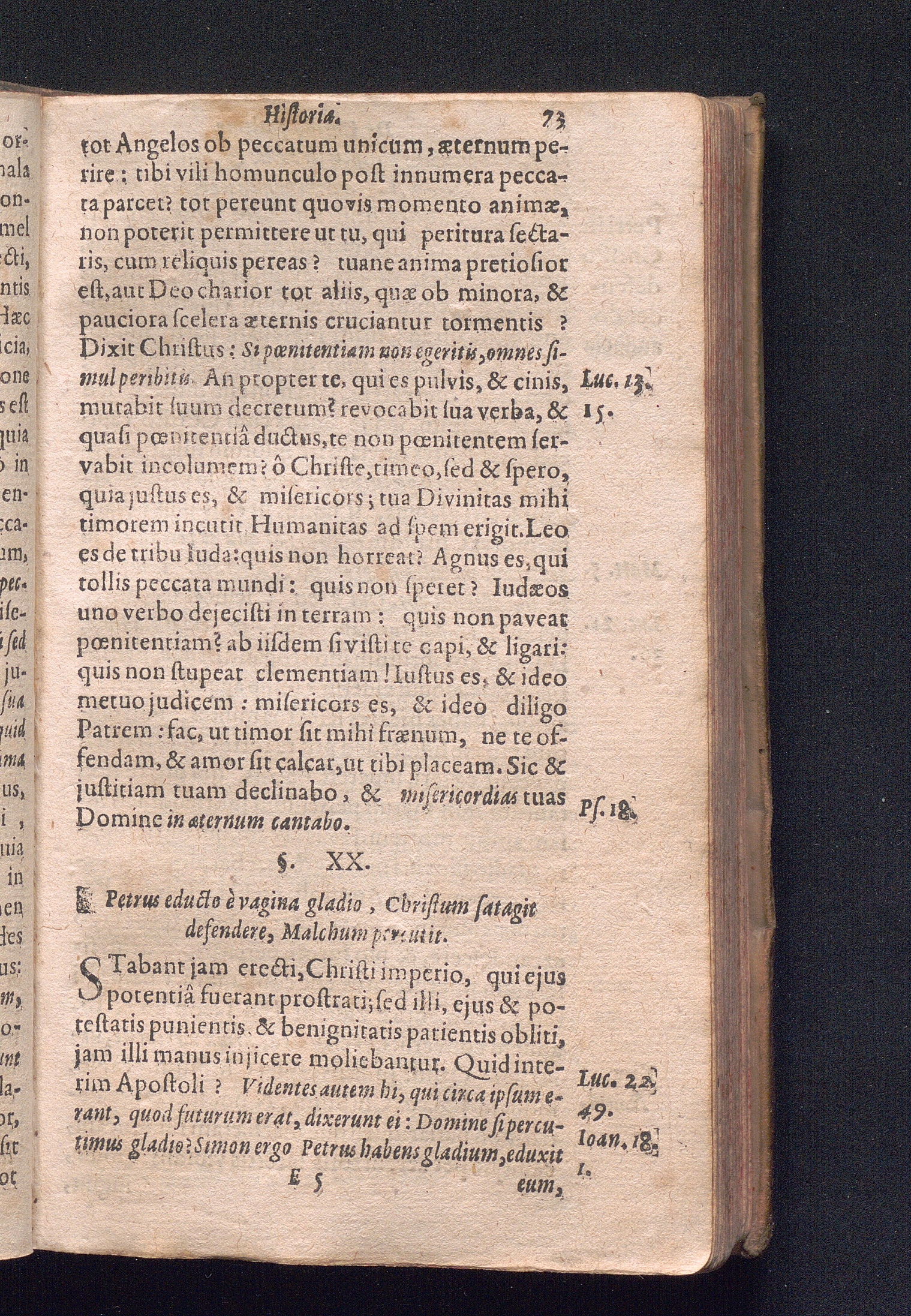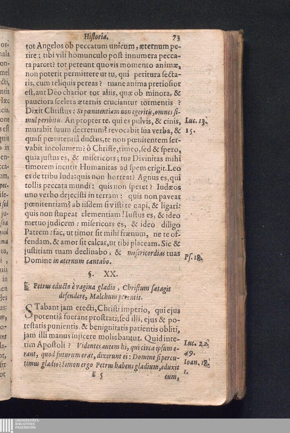 §. XX. Petrus educto è vagina gladio Christum satagit defendere, Malchum percuti[...]