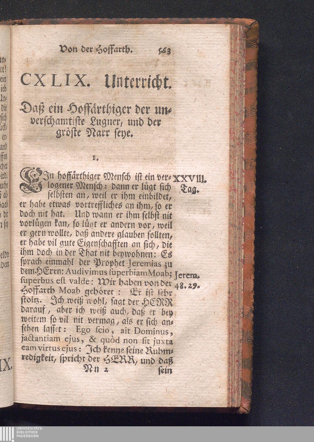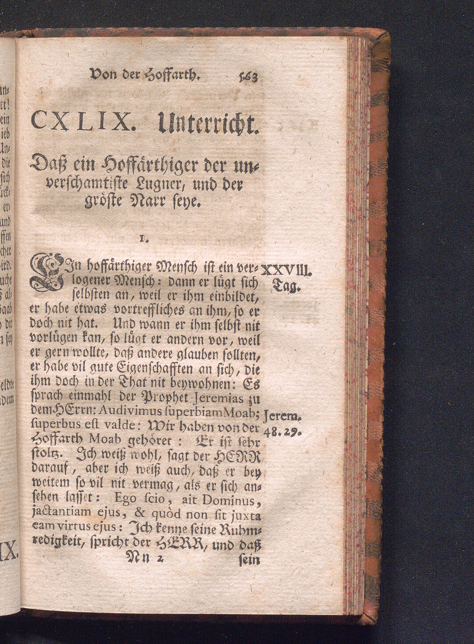 CXLIX. Die Hoffarth wird betrachtet als ein Laster eines hochmüthigen Lugners, und[...]