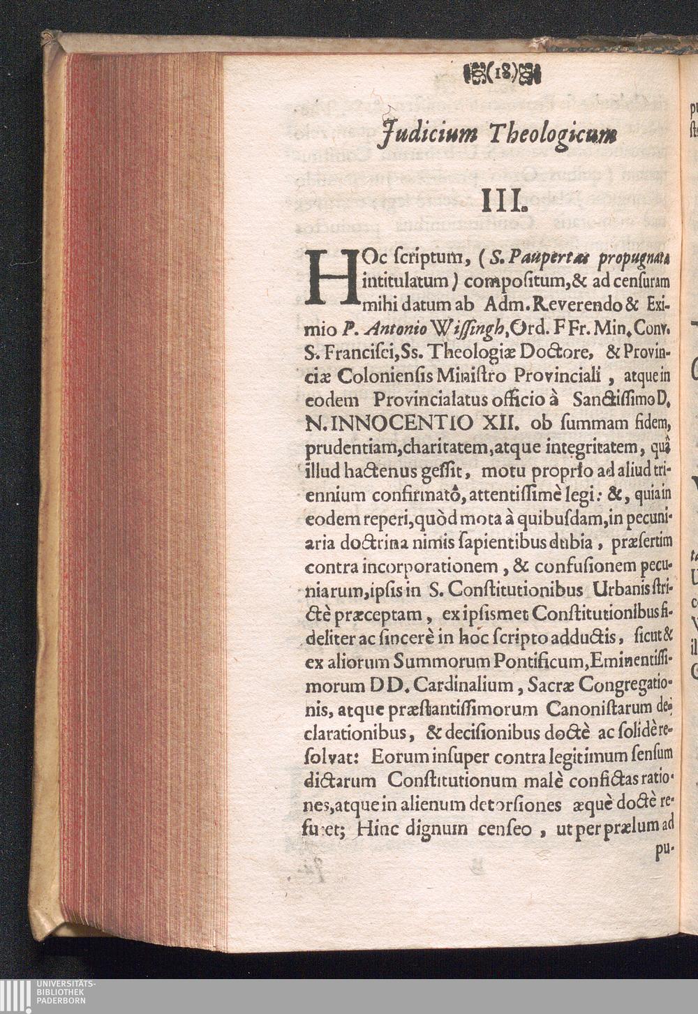 Sancta Paupertas Religosorum propria sine proprio Propugnata : quæ mandata in S. Urbanis Constitutionibus à SS. DN. N. Urbano VIII. Pontifice Maximo ... / e tenebris in observantiæ ad lucem observantiae prodiens voto, prece, ac desiderio P. Antonii Wissingh de Siegburgo, ...