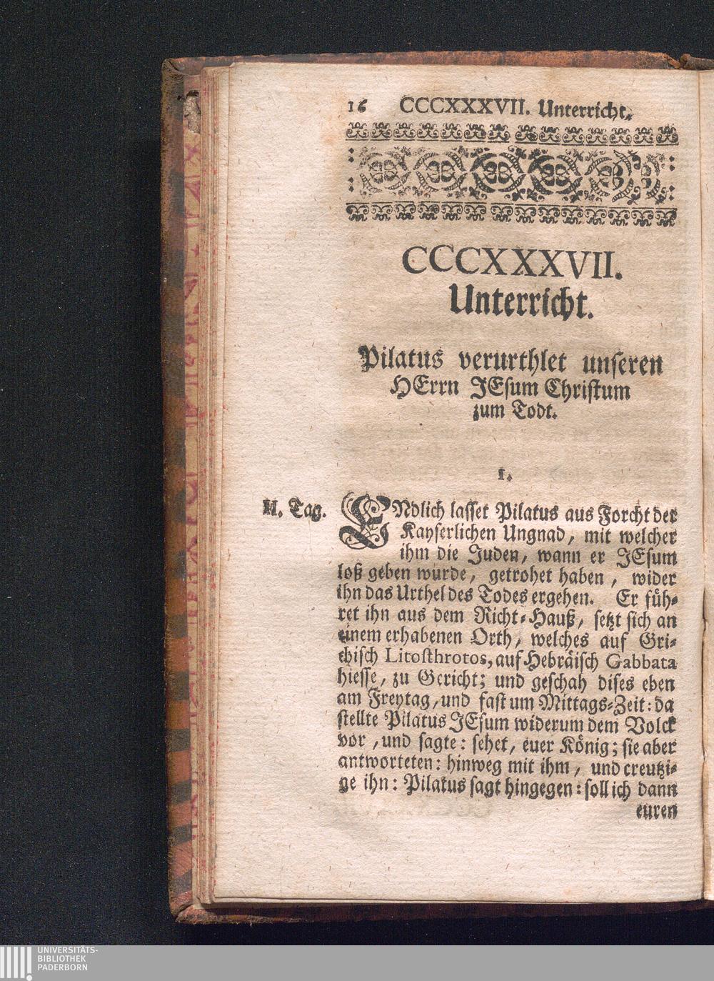 CCCXXXVII. Pilatus spricht wider Jesum das Urthel des Todts.