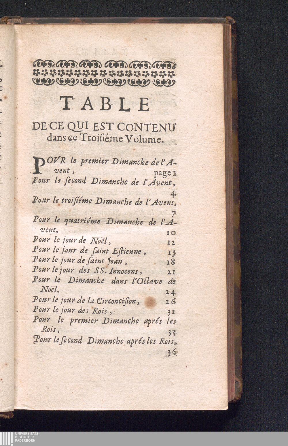 Table De Ce Qui Est Contenu dans ce Troiséme Volume.