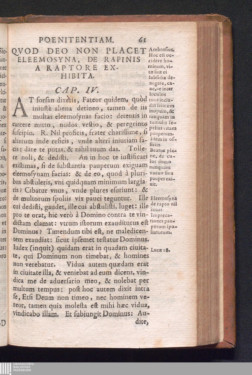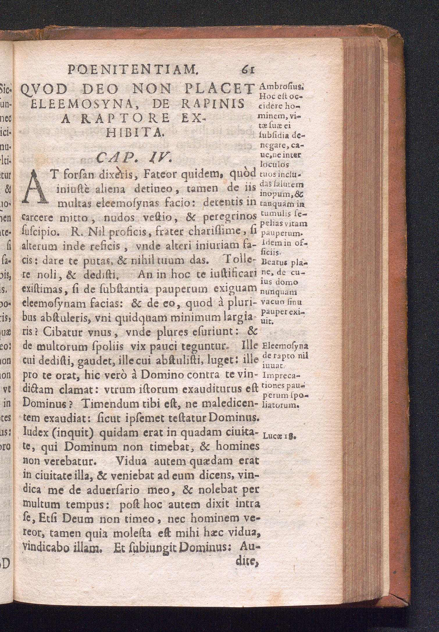 Cap. IV. Quòd Deo non places eleemosyna de rapinis, à raptore exhibita.