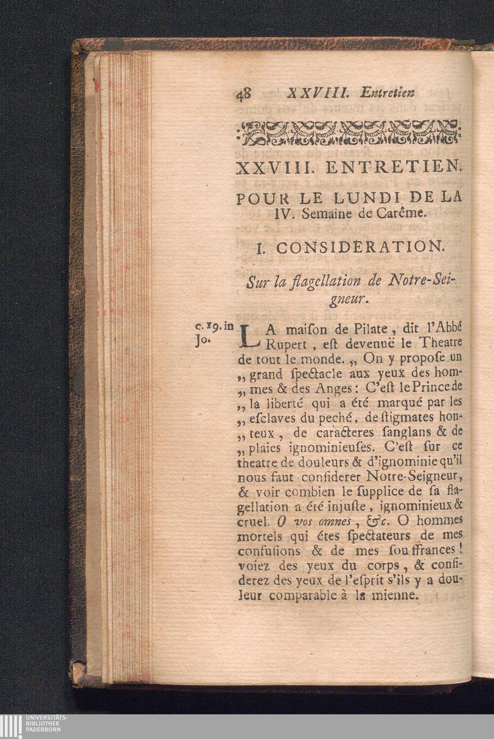 XXVIII. Entretien. Pour le Lundi de la quatr[i]éme Semaine. Sur la flagellation de[...]