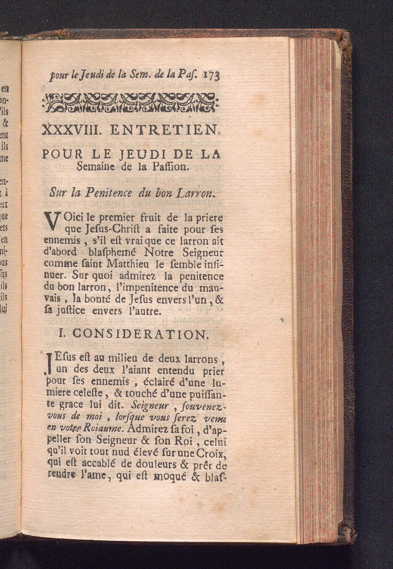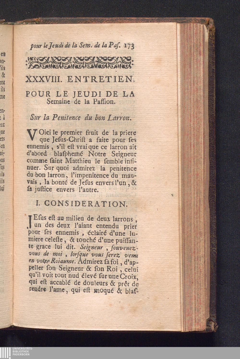 XXXVIII. Entretien. Pour le Jeudi de la Semaine de la Passion. Sur la penitence du[...]