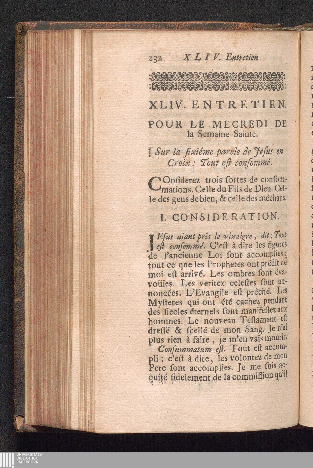 XLIV. Entretien. Pour le Mecredi de la Semaine Sainte. Sur la sixiéme parole de Jesus-Christ[...]