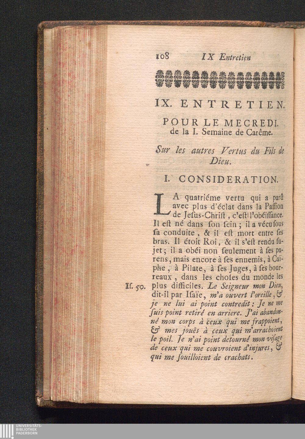 IX. Entretien. Pour le Mecredi de la premiere Semaine. Sur les autres Vertus du Fils[...]