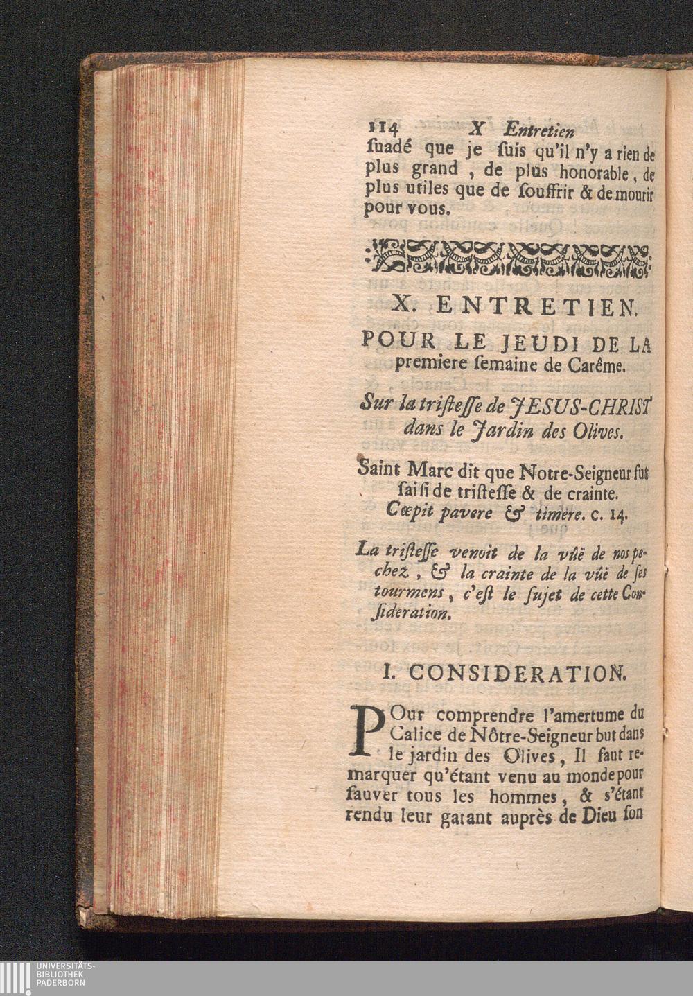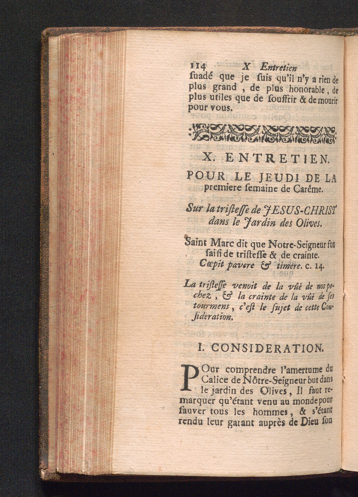 X. Entretien. Pour le Jeudi de la premiere Semaine. Sur la tristesse de Jesus-Christ[...]