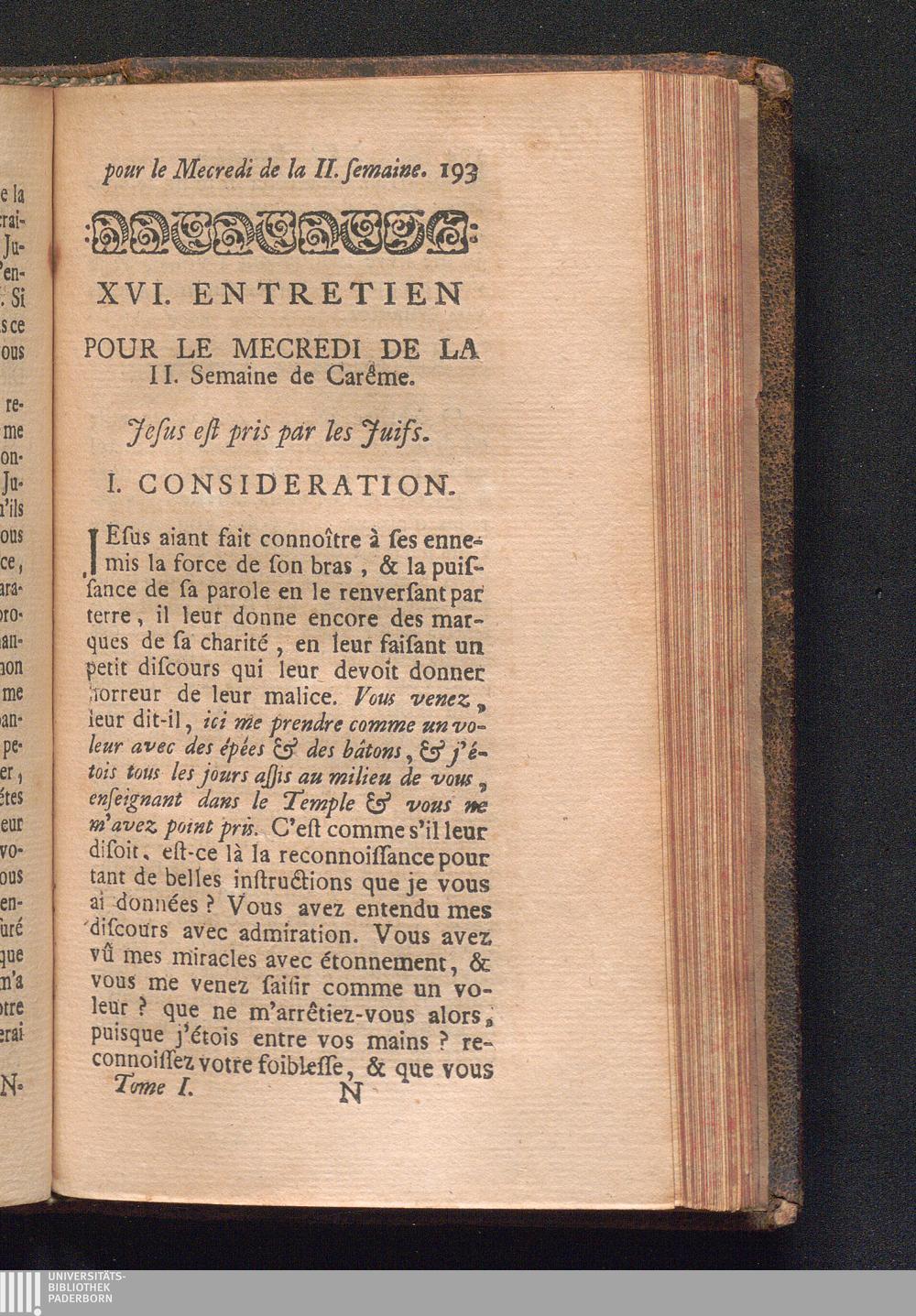 XVI. Entretien Pour le Mecredi de la seconde Semaine. Jesus est pris par les Jui[...]